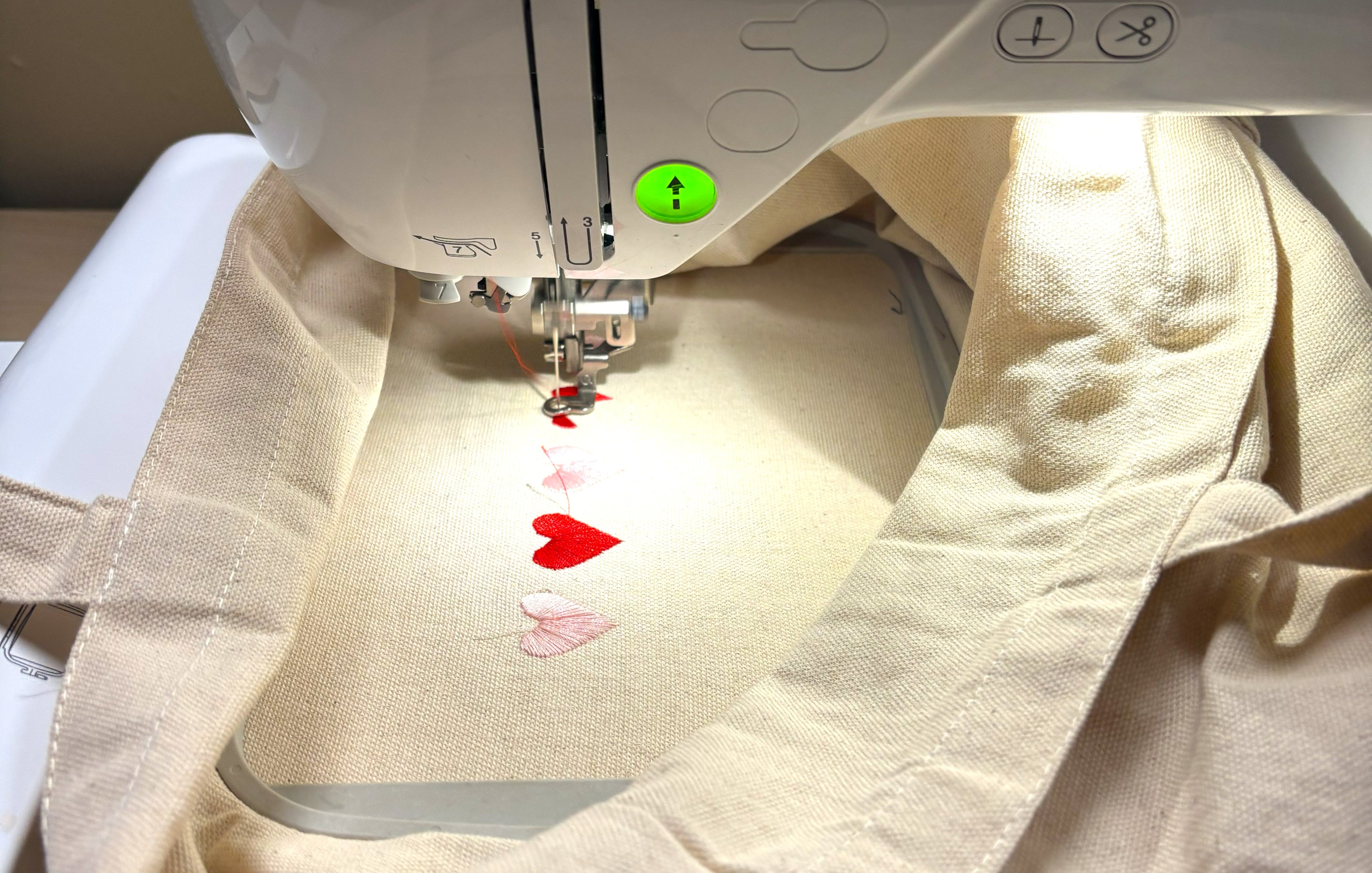 Every design begins as a hand-drawn sketch, which I then translate into embroidery using specialist software and my machine brings it to life. I care about creating pieces that are made to last, which is why I choose to work with 100% cotton, Fairtrade, or organic fabrics wherever possible.