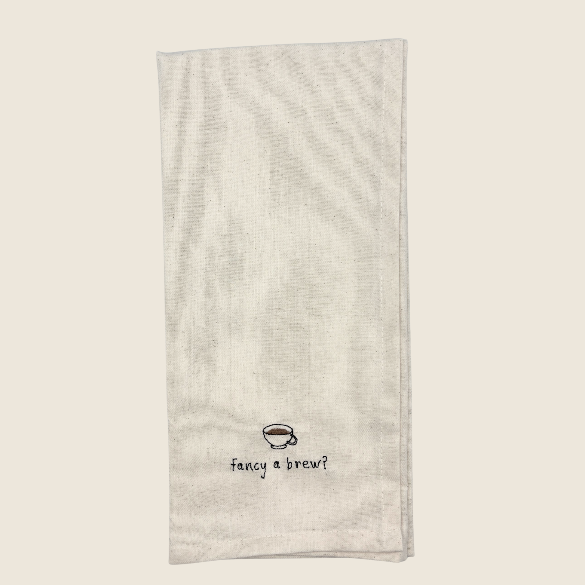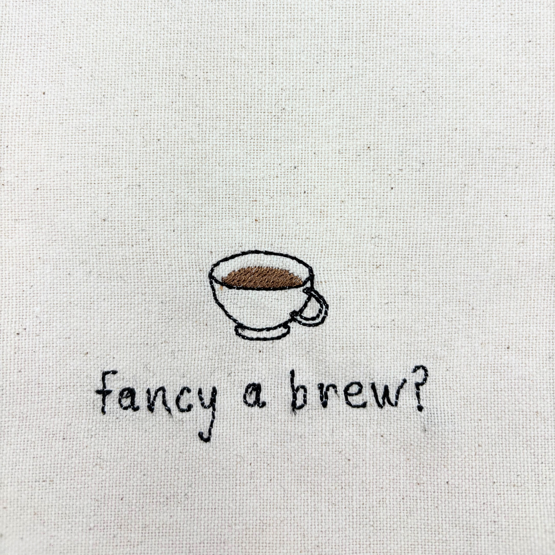 Fancy a brew tea towel design. Who doesn't love a brew?
